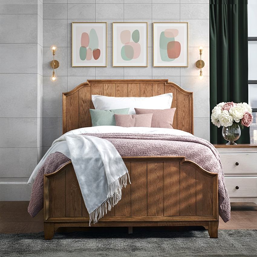 1008 Abigail-Oak Single Panel Bed