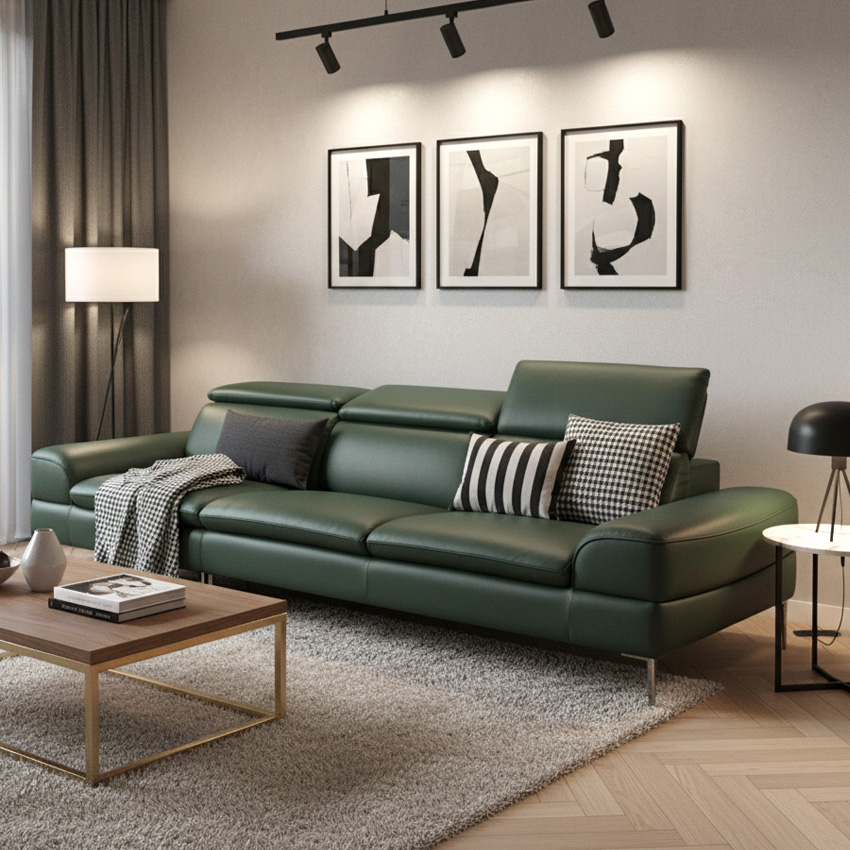 10591-Deep GreenLeather Sofa