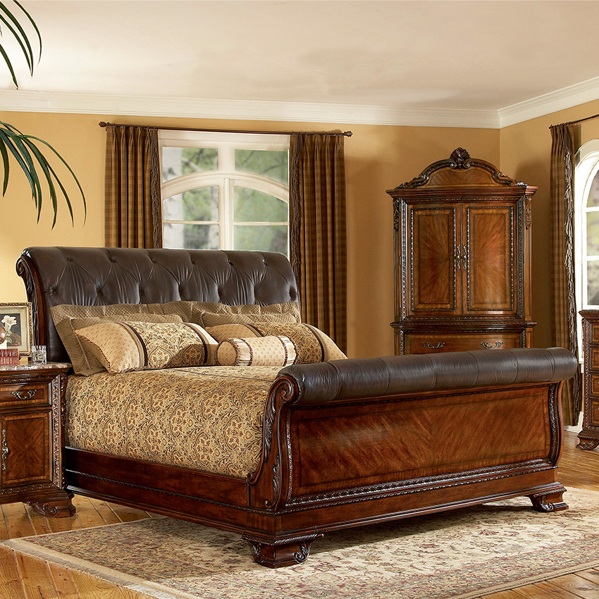 [ OUTLET ] 43000 Old World Leather Sleigh Bed ( 침대 + 협탁 + 화장대 )